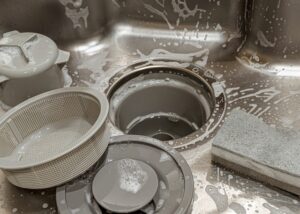 • 洗剤カス: 食器用洗剤の成分が油汚れや食べカスと反応し、固まって排水管に付着することもつまりの一因となります。